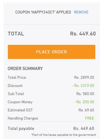 Use Promo Code -HAPPY24OCT[Get Flat Rs. 200 off on Rs. 500]