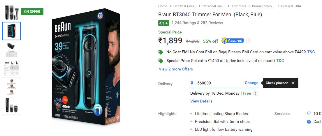 Flipkart running an amazing offer where you can grabFREE Gillette Proglide : Braun BT3040 Trimmer at Rs.1899
