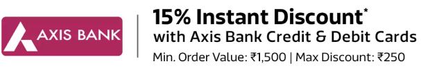 - 15% Instant Discount with Axis Bank Credit & Debit Cards on the purchase of groceries.