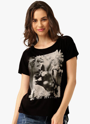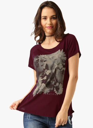 ALL ABOUT YOUWine Printed Round Neck T-Shirt