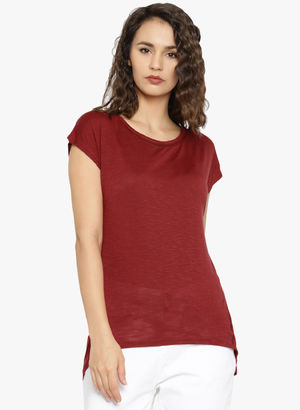 ALL ABOUT YOUMaroon Solid T-Shirt