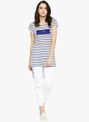 ALL ABOUT YOUWomen White & Navy Striped High-Low T-Shirt