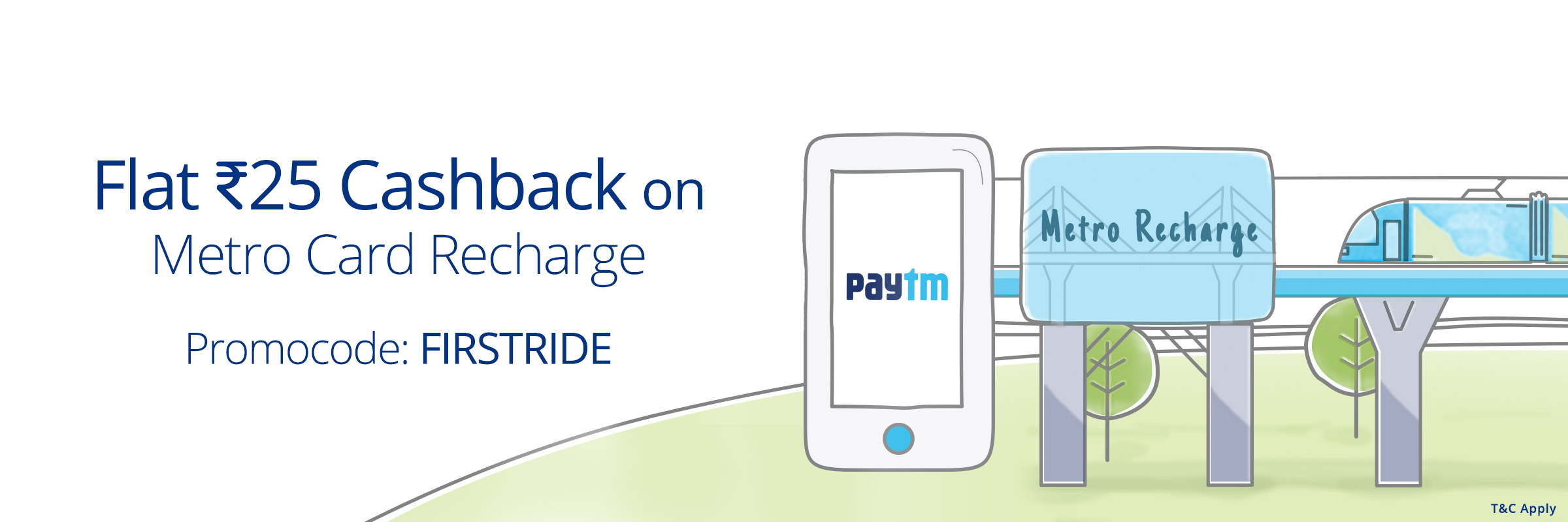 - User will get Rs. 25 Cashback on Metro Card recharge of Rs. 200 and above.