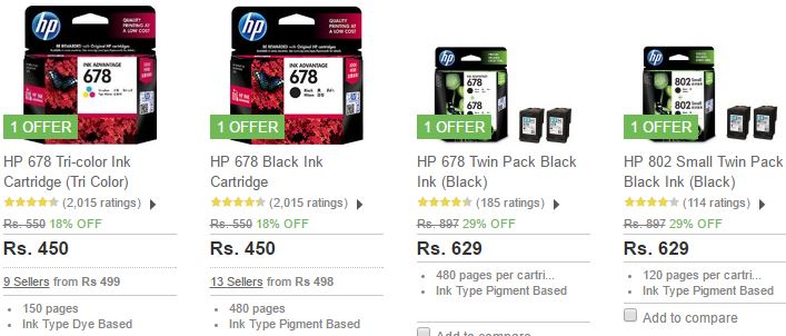 HP Printer Ink Cartridges Minimum 15% off to 33% off