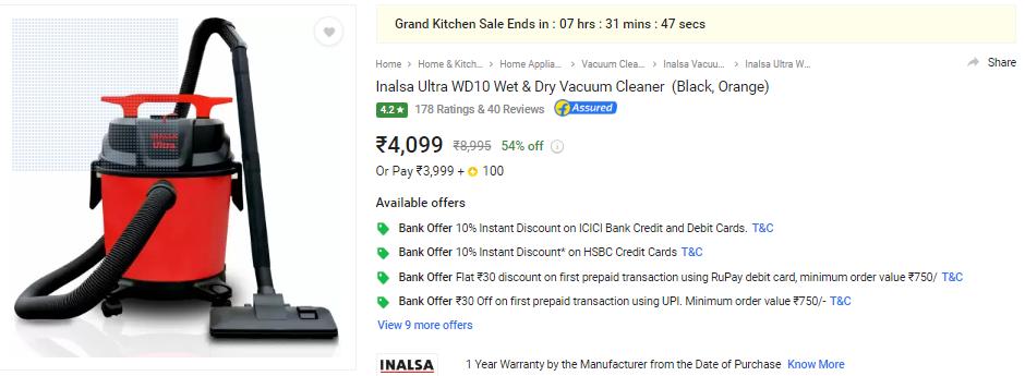 Hii, since we all are at home these days, check out theInalsa Ultra WD10 Wet & Dry Vacuum Cleaner tokeep your home clean easily and effectively.Also, you get 54% off discount on this model onFlipkart, 10% off for ICICI bank users and !!