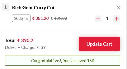 Hii, Foodies Here A Must Buy Offer For You From Licious Where You Can Buy500gm Goat Curry Cut For Just Rs. 50 After 20% Coupon off and dealCorner cashback. Shop pn Licious For Rs. 300 and Get Flat Rs. 280 dealCorner cashback.