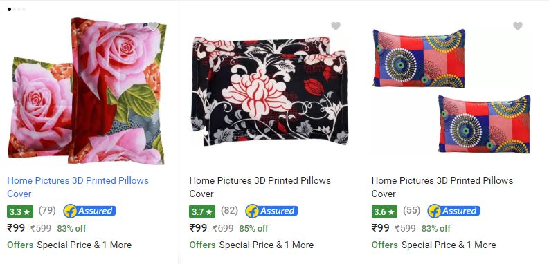 Flipkart is running a fantastic offer where you can get Pillow Cover Pack Of 2 At Min 65 - 81% Off At Just From Rs.99, here you can get a wide range of products+ Free Shipping for f-assured.To get this offer here are the steps: