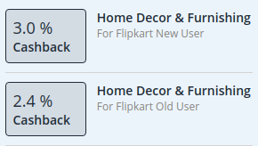 We are offering dealCorner cashback on Flipkart Where users get 3% dealCorner cashback [ New Users ] and 2.4% dealCorner cashback [ Old Users ] on Home Decor & Furnishing items.