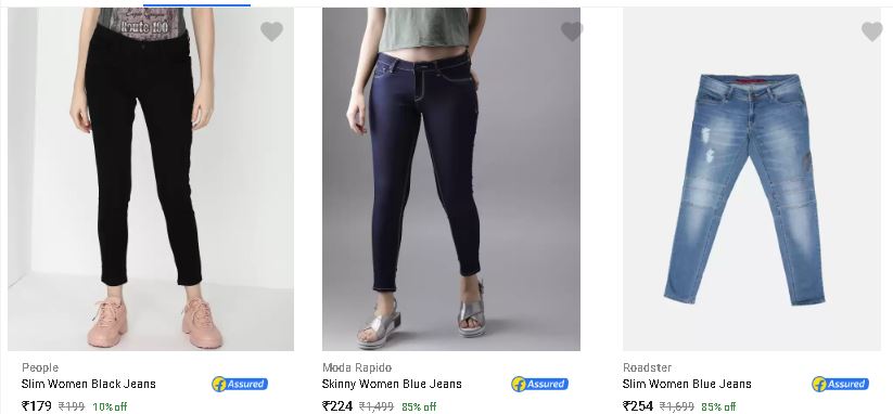 Top Brands womens Jeans Min. 85% Off From Rs. 179 + 3% dealCorner Cashback