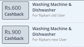 Flipkart Is Running A Discount On Home Appliances They are offering Up to 59% off on Top Brands Best Selling Washing Machine Starts From Just Rs. 6899. We Are Now Live With Cashback on Flipkart Where New User Of Flipkart Get Rs. 900 dealCorner cashback on Washing Machine and For Old User Of Flipkart Rs. 600 dealCorner cashback.