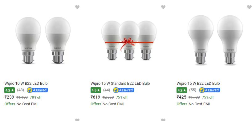 Flipkart is offeringWipro Led Bulbs minimum 65% OFF From Rs. 239 + FREE SHIPPING