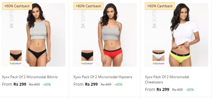 Paytm is offeringXYXX Women's innerwear flat 60% Cashback From Rs. 124. To get this offer, please follow the below mention steps.